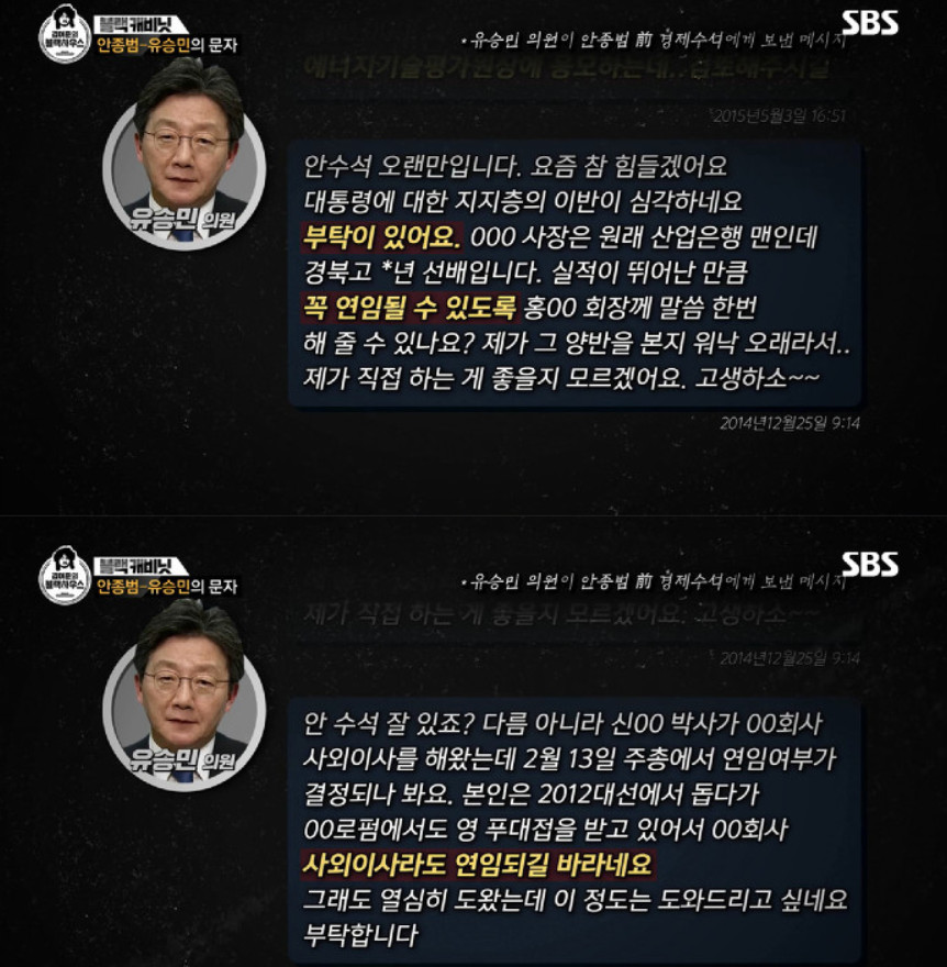 “당시 제 의도는 청와대가 미리 내정하는 경우가 많기 때문에 내정된 인사가 있는지를 물어보고 후보를 추천하는 것”이라고 해명했다. 다만 “그럼에도 불구하고 청탁으로 비친 점은 매우 송구스럽게 생각한다”고 했을 뿐이다. 즉 자신은 ‘청탁’을 한 것이 아닌데, ‘청탁으로 비친 점’이 송구하다는 것이다. ‘정치 공작‘이라고 펄쩍 뛰던 사람의 변명으로는 참....