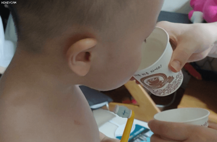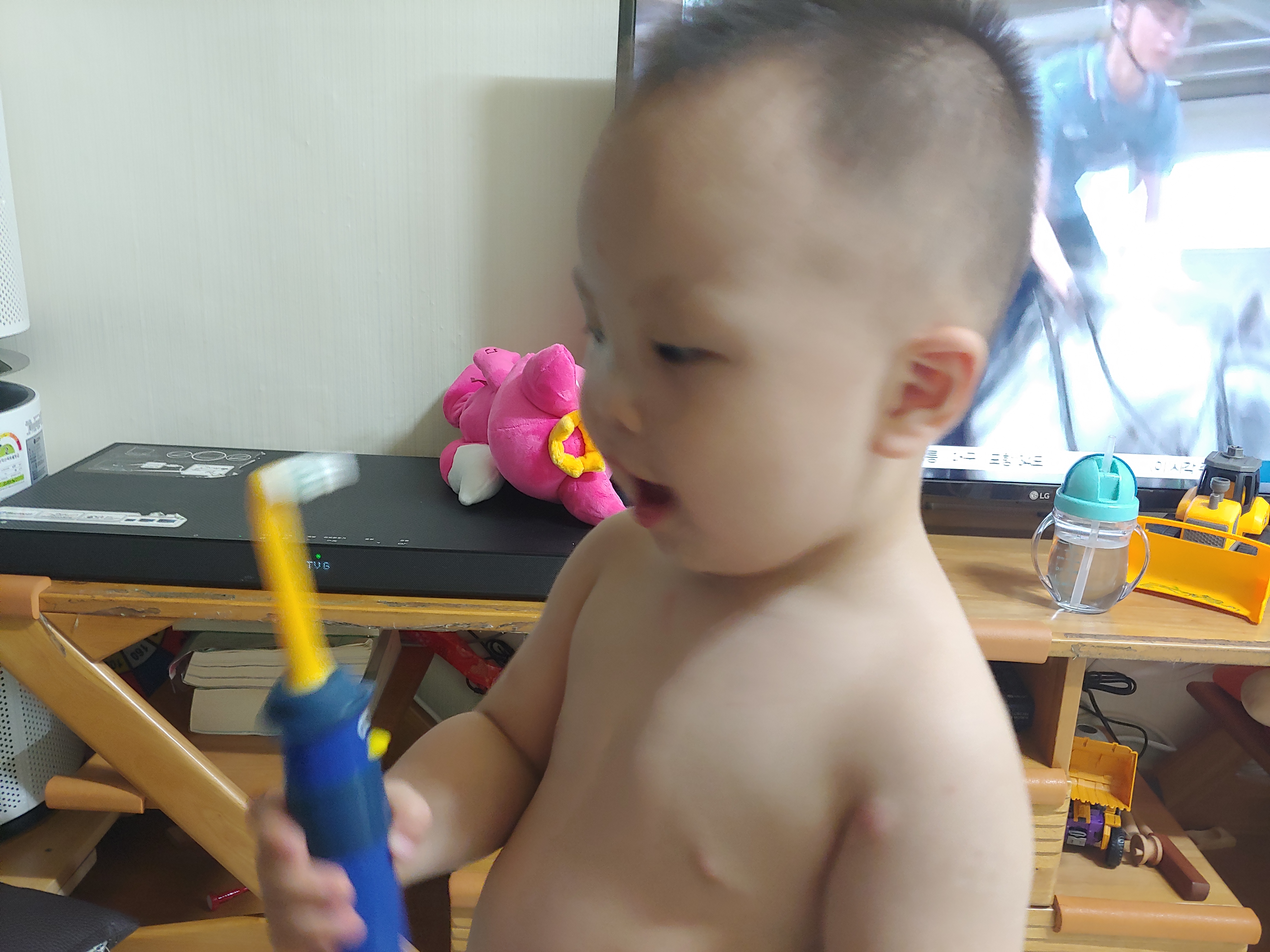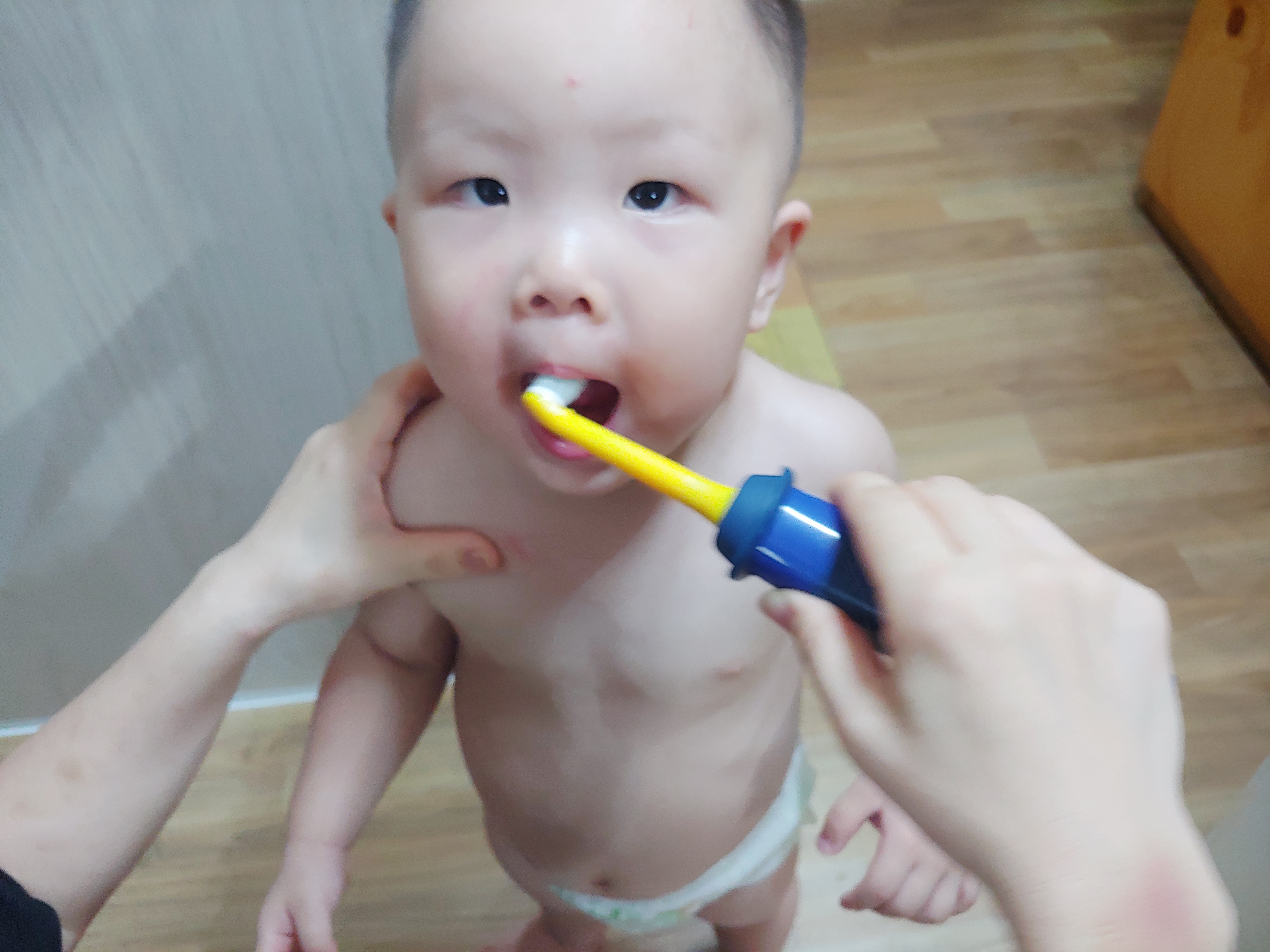 다행인 것은 아이가 칫솔질을 싫어하지 않는다고 하네 정말 다행이다 선물 하고 사용 안하면 좀 그렇잖음 마음이
