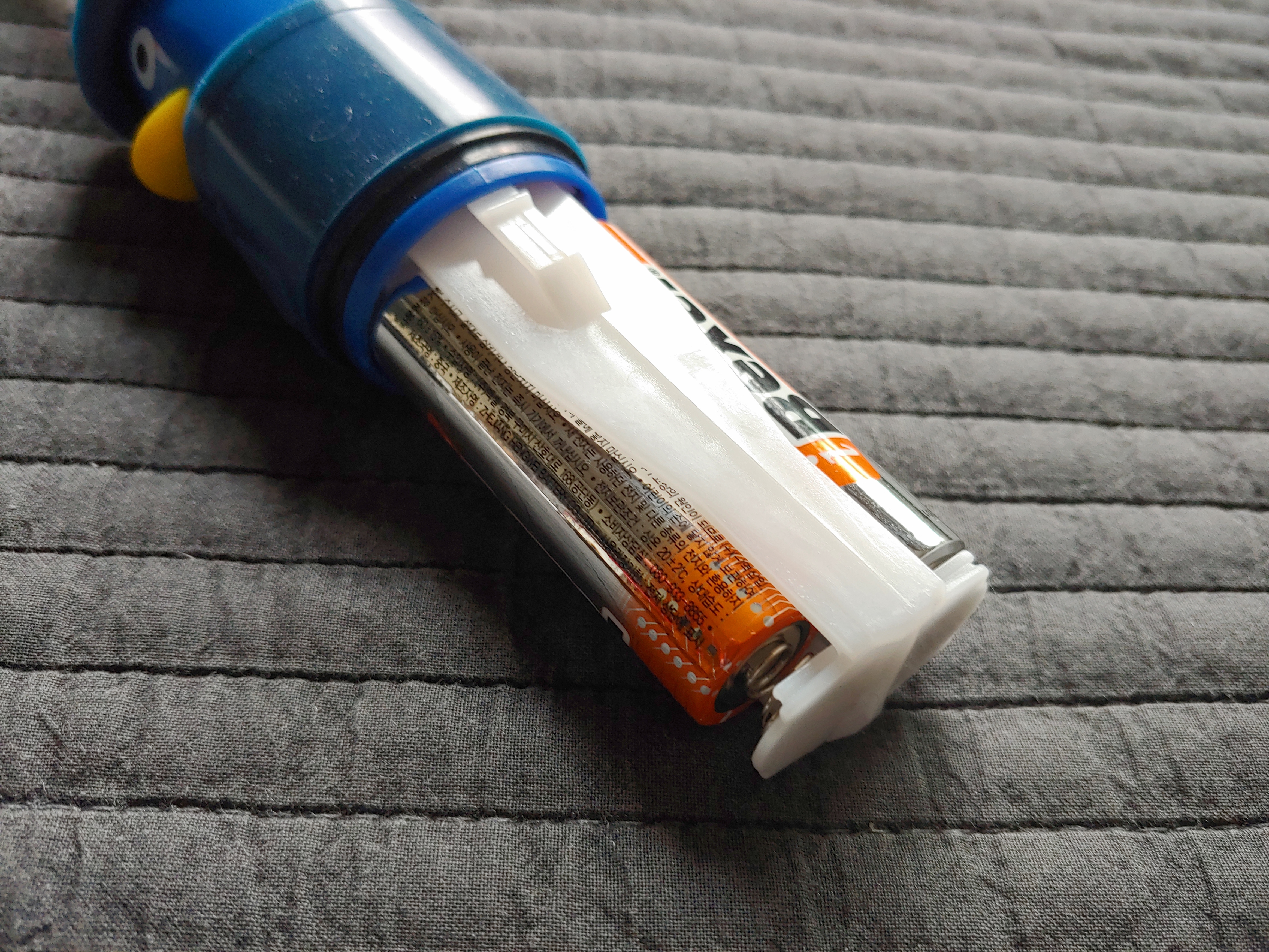 성인용은 충전식인데 유아용은 건전지 방식이더라 무게 때문일까? 어린이들이 들기에는 충전식은 무겁게 느껴질 것이다