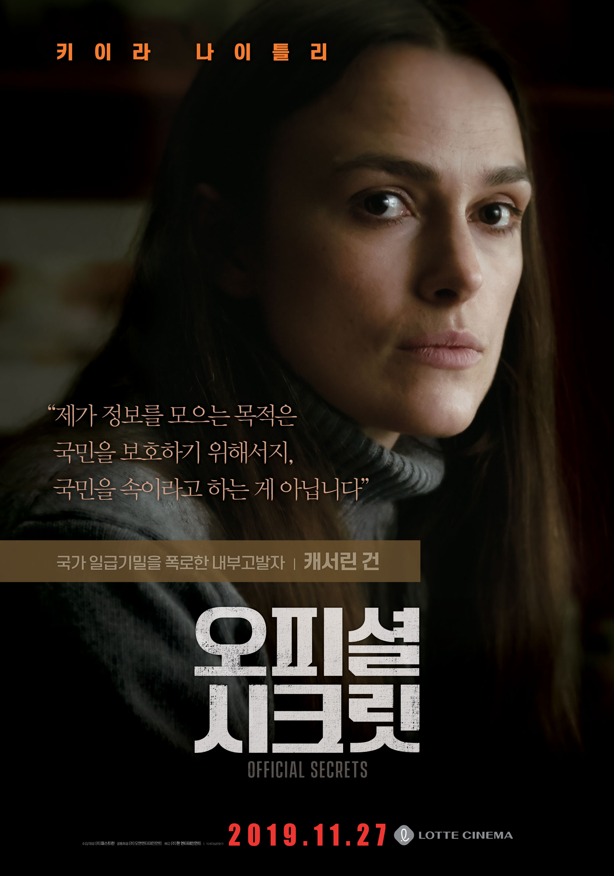 하지만 보통 난 지루하고 뻔한 영화는 못 참는데 이 영화는 지루한 감을 그렇게 느껴보지 못한 것 같다 그녀는 어떻게 될까? 국가는 어떻게 그녀를 올가 멜지 이런 궁금증이 자리를 잡았고 무엇보다 키이라 나이틀리가 보여준 연기는 참 매력이 넘쳤다