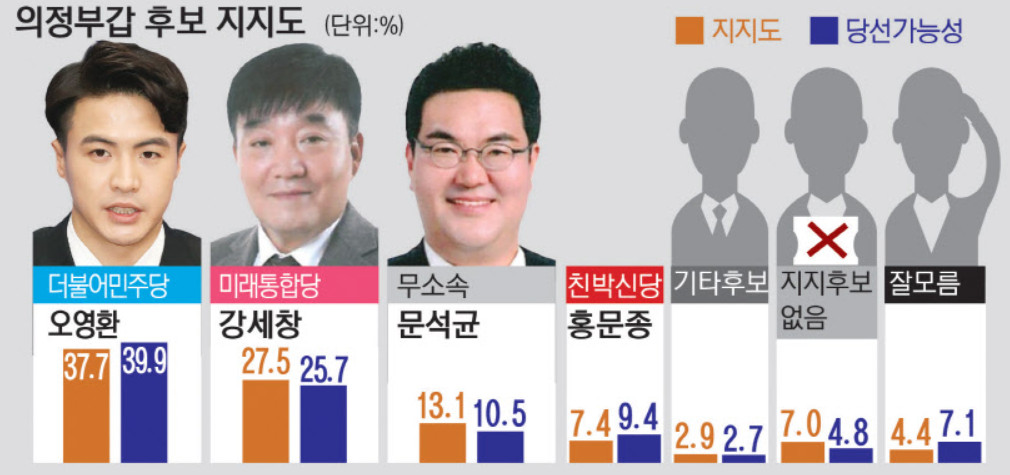 오영환 37.7%인데 문석균은 13.1% 3배 정도로 지지율이 떨어져 버리네