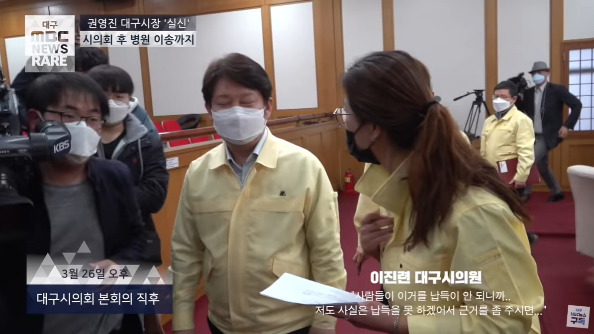 이 장면을 보면 순간적으로 핑~~한 느낌이 들어요 당연히 그럴 수 있어 이때만큼은, 그런데 다른 부분을 보면 쇼라고 할 수 밖에 없는 이유가 있는데 권영진은 대구시장으로 컨트롤타워!!