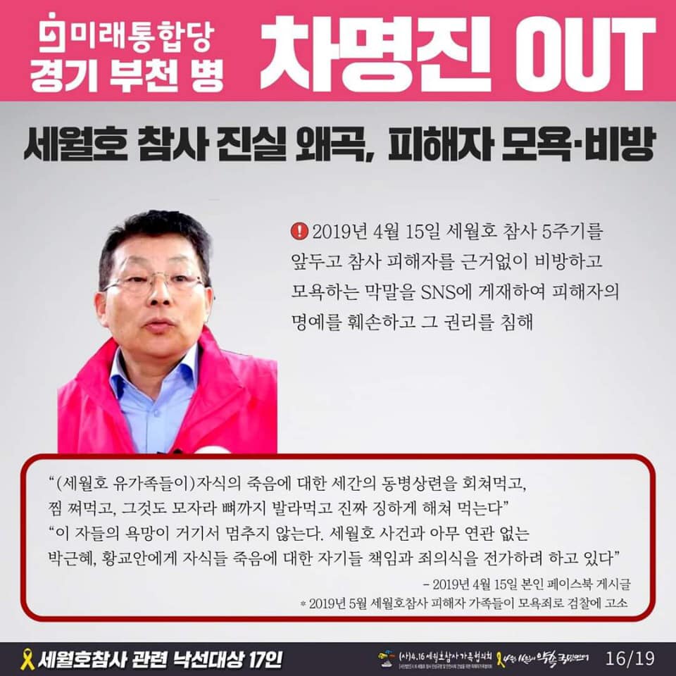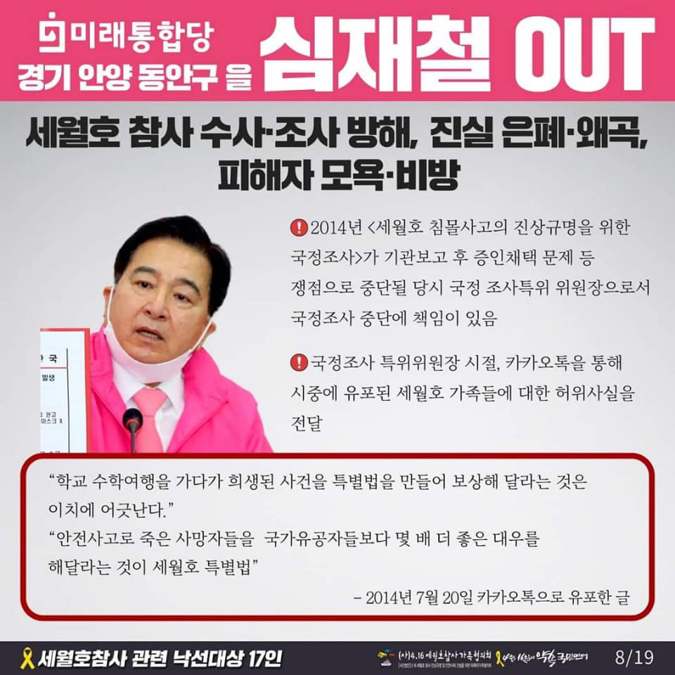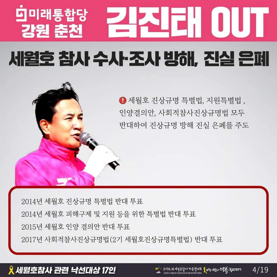 김진태는 세월호참사 관련 낙선대상 17인에 올랐다