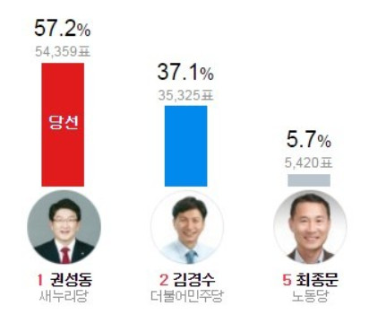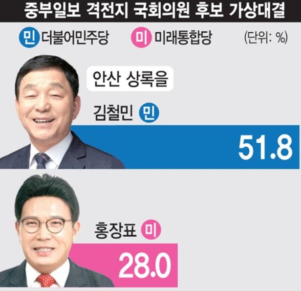 둘 다 첫 출마인데 김민철이 압도적이라 할 수 있다