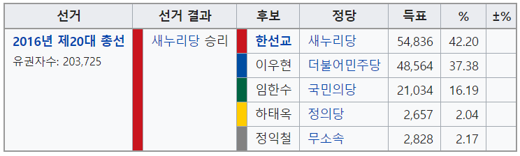 보이시죠 3.5% 이번에 보시면 정의당이 더 많은 표를 가지고 있어요 6% 같은 진보라고 하지만 전국으로 보면 정의당표 고추가루가 한두개가 아닙니다 20대 총선에서 김진태가 저렇게 당선 된걸 보고 환장 했었던.....