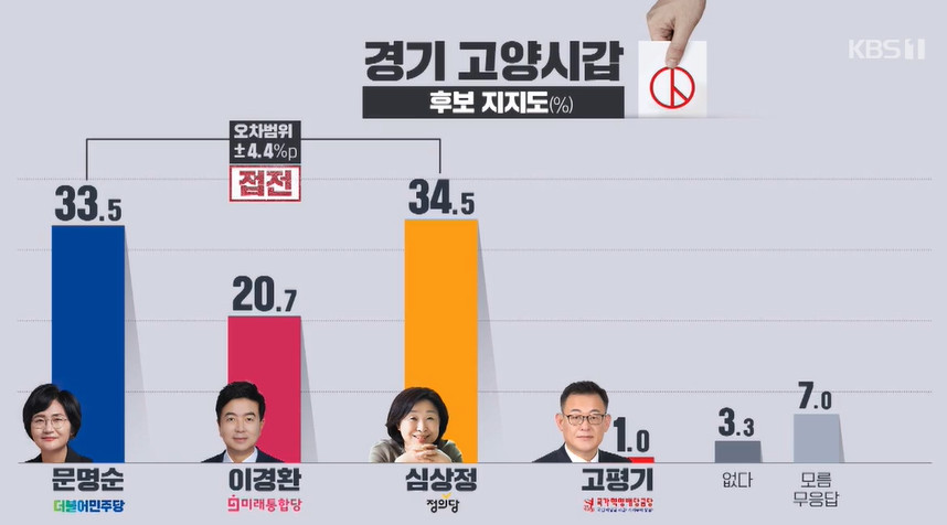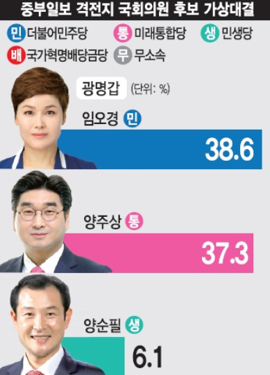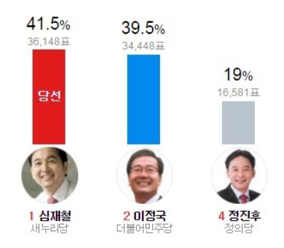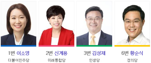 통합당 이경환, 민주당 문명순, 정의당 심상정
