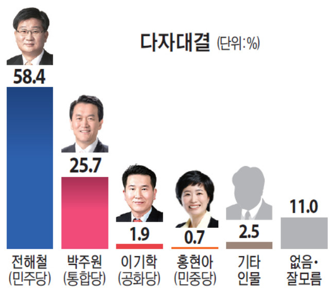 민)김경수가 24.8%로 선두를 달리고 있지만 이기지 못해요