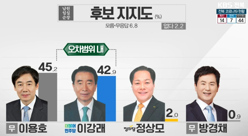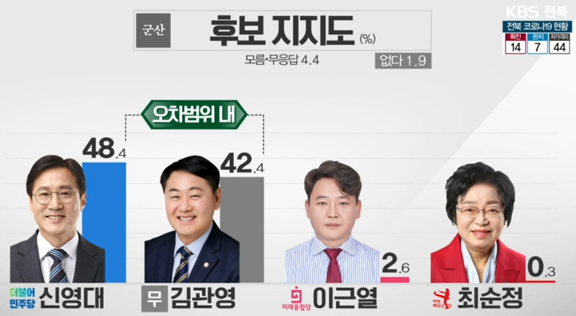 51.5% 지지를 가진 김성주 30.3%로 오차범위 밖에서 정동영이 지고 있다 대선후보까지 했던 사람의 마지막 정치 인생이 참...