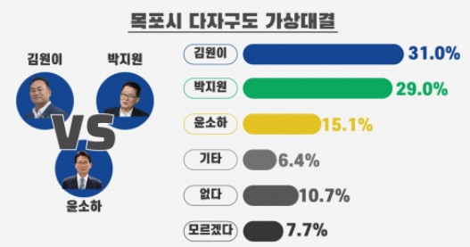 박지원이 김원이에게 뒤질 줄이야 날짜가 지나가는데 오히려 김원이 지지율만 더 오르고 있다