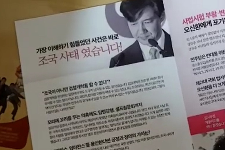오신환은 이 홍보물에 조국 이야기를 한다.