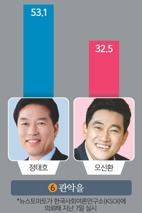 여론조사 보다 정태호가 약간 빠지고 오신환이 높아졌다
