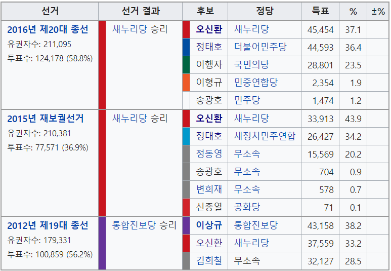 역적 정동영 덕분에 표가 분산이 되고 어부지리로 오신환은 3만3913표를 얻어 43.8%의 득표율을 기록 당선이 돼!