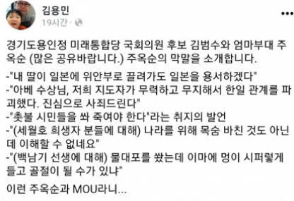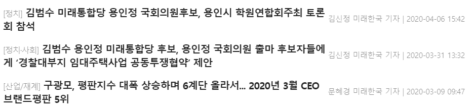 21대총선 전국여론조사, 후보자를 알아 보는 글을 올리고 있어 이 와중에 경기 용인정 김범수가 대표인 미래한국 시사주간지가 일베옹호, 주옥선과 관계 논란으로 봤어 그러다 새한국( 새로운 한국을 위한 국민운..