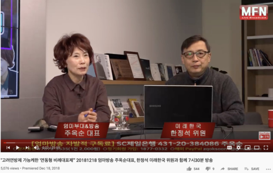 그렇다 주옥순tv tv 엄마 방송은 미래한국과 돈독한 사이임이 증명 된 거야