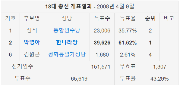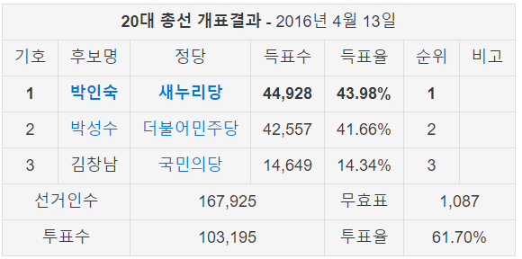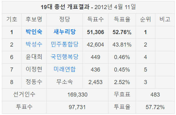 18대 총선 지지율 보면 거의 40% 차이가 나 그런데 19대 부터는 조금씩 변화가 일지