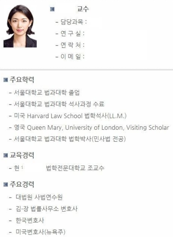 언니들 침흘리지 말자 이미 결혼했고 아내는 장보은 한국외대 법학전문대학원 교수래