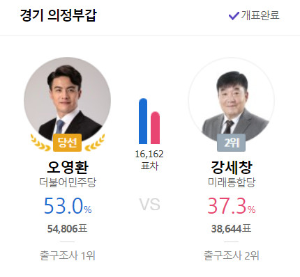 이 지역에서만 내리 도의원5선, 경기도의회 의장이자 경기도 연정 부지사 그런데 표 차이가 그렇게 많지 않다