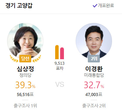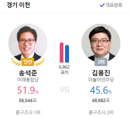 수도권에서 최다 득표를 했다.