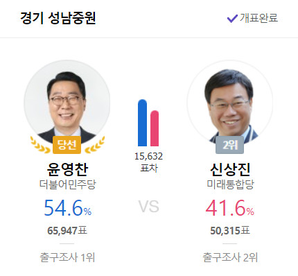 대단하다 민주당 텃밭도 아닌 곳에서 통합당 중진 신상진을 상대로 압승을 했다