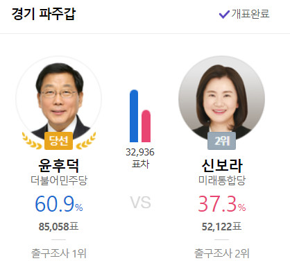경기도 파주시갑 여론조사 없어 판세 인물 보기 윤후덕,신보라