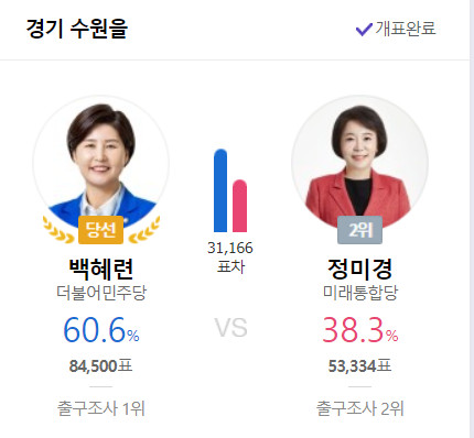 백혜련이 지역구 관리를 잘 하는가보다. 압도적이네