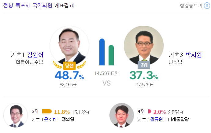 민생당이 전멸했다. 박지원까지 모조리 전멸, 무소속 한명 빼고 다 민주당이다