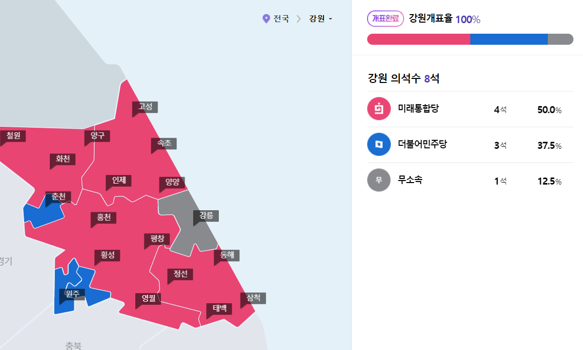 강원도는 8석이다