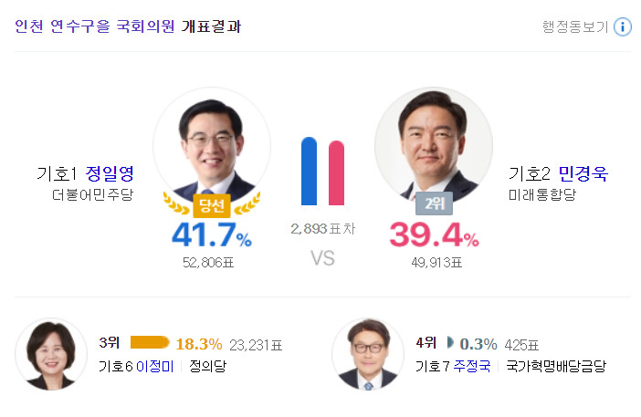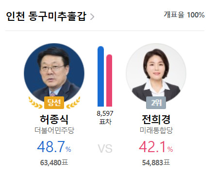 인천동구미추홀구을 전두환이 사위 였었던 윤상현이 또 무소속으로 당선되었네, 남영희는 정말 아깝겠다