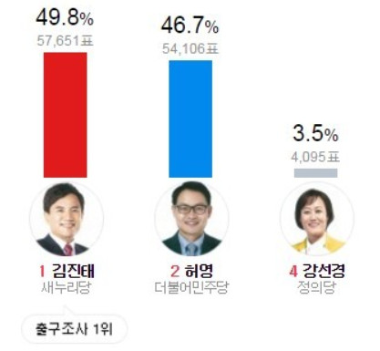 무수속 출마한 김경진은 그나마 30%대를 얻었지만 낙선