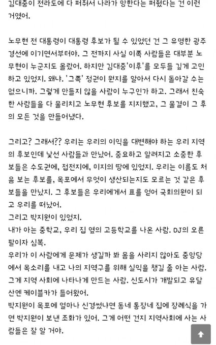 경북 김천이 원적이요 부산이 고향인 내가 생각할때 정치인을 대하는 자세가 전라도와 영남의 차이는 크다
