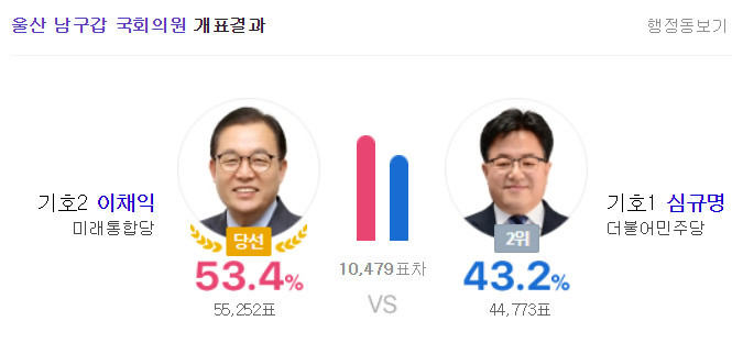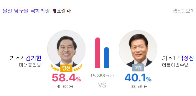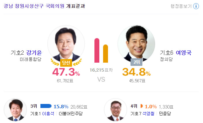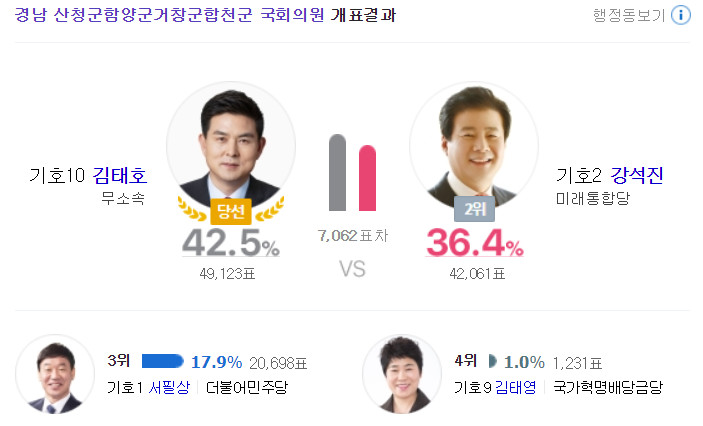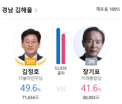 김정호는 공항갑질로 당선을 날려 먹을 뻔 했다. 표 차이 봐라.