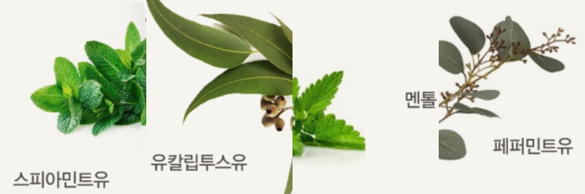 자연유래 허브에 스피아민트, 유칼립투스, 페파민트, 멘톨