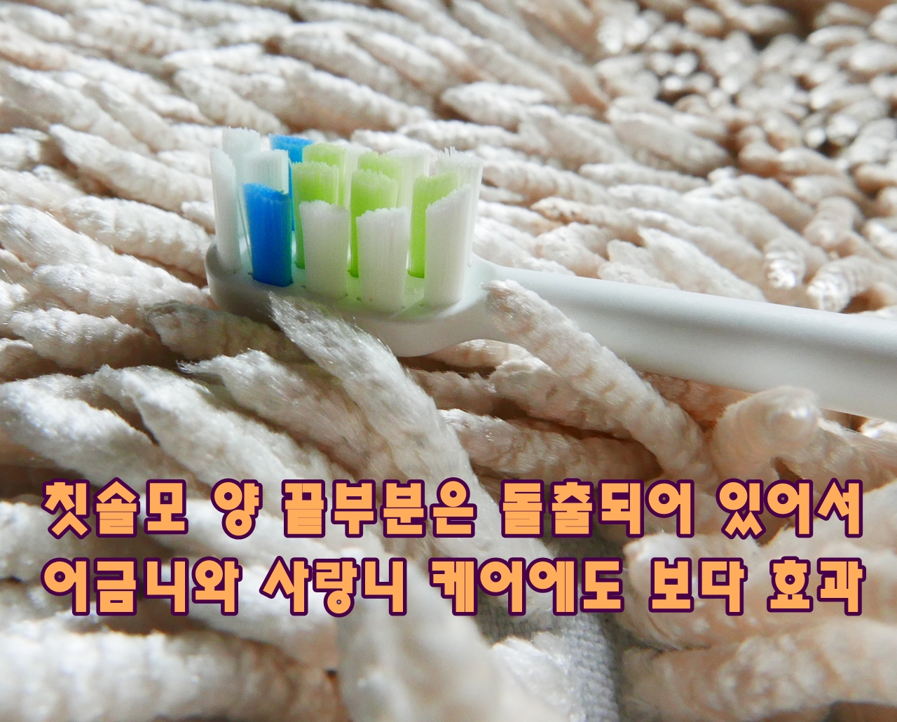 칫솔모 양 끝이 돌출 되어 있어 좀 더 편하게 케어를 할 수 있게 되어 있어
