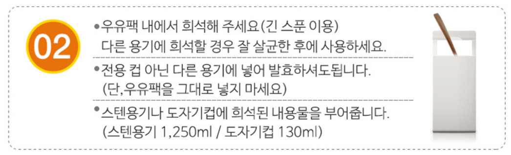 혼합은 우유팩에서 바로 하라고 하네