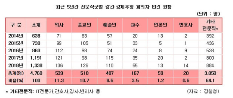 참고로 성범죄가 가장 많은 직군이 의사야, 그런데 이들은 여전히 진료로 밥벌이를 하고 있어 ,현행 의료법상 면허취소는 의료행위와 관련된 매우 한정적인 범죄에만 해당되기 때문에 살인, 강간, 납치를 저질러도 의사면허는 짱짱해, 이게 2000년 의약분업 이후에 만들어진 법이지, 국회에 간 의사놈이 만든거야.