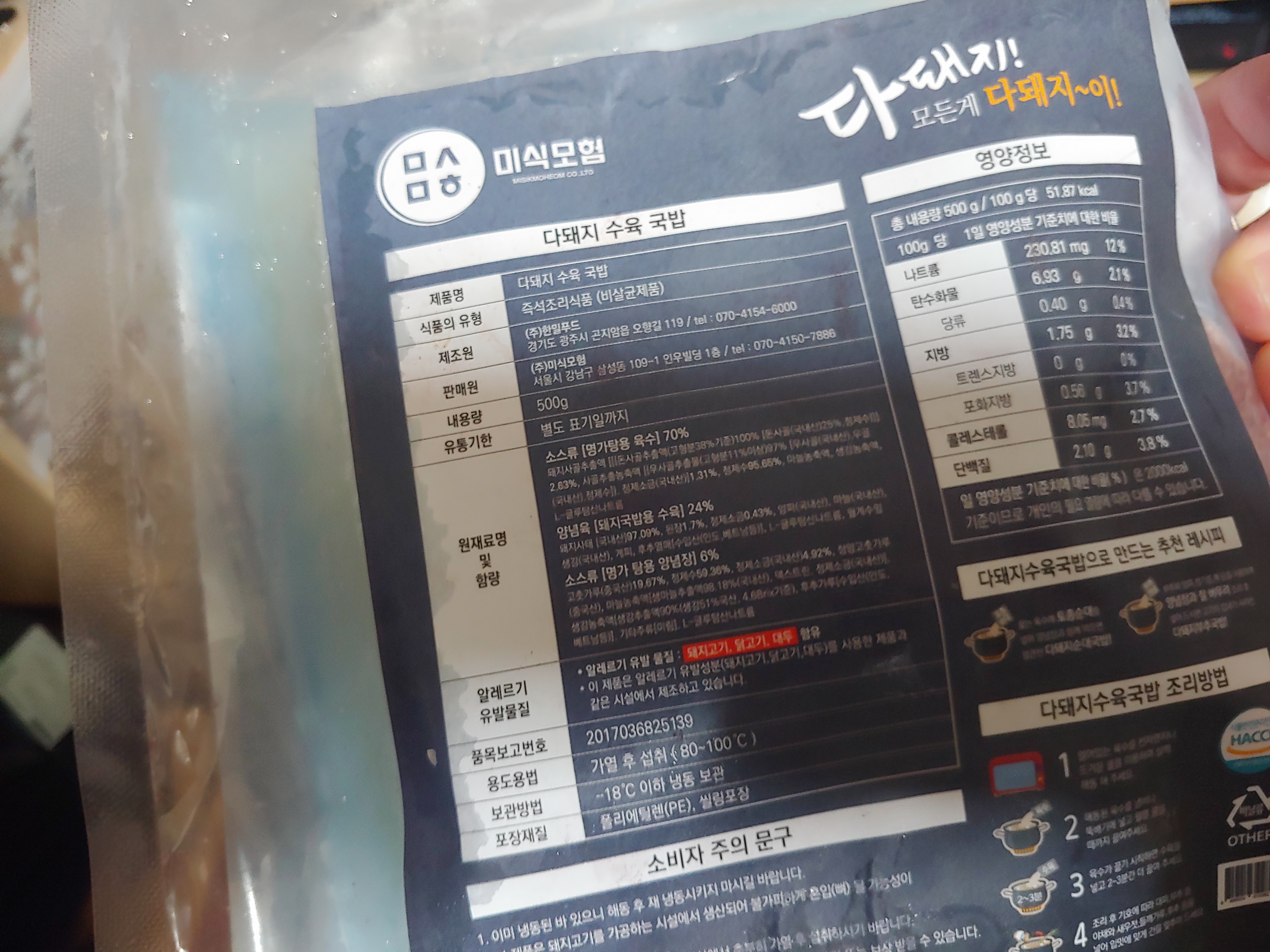 집에서 간편하게 먹을 수 있는 돼지국밥 가격은 4천원이다