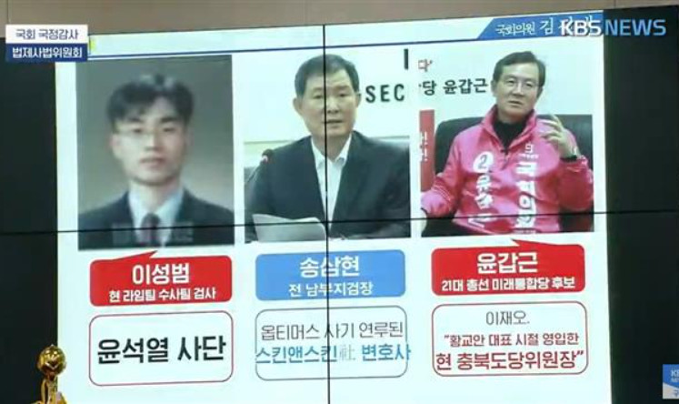 한참 라임. 옵티머스 수사 중에 옷을 벗고 나갔는데 나가자말자 한 짓이 옵티머스 사기에 연루된 스키앤스킨 화장품회사 회장 변호사가 된거다, 전관예우 하지 말라고 해도 이딴 짓을 태연히 하는 고위검사였던 송삼현, 파렴치도 이런 파렴치가 없어, 이건 변호사도 박탈해야해