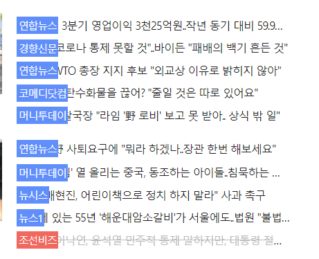 이렇게 어떤 언론 기사인지 알수가 있다, 차단하고자 하는 언론사는 알아서 차단하면 된다