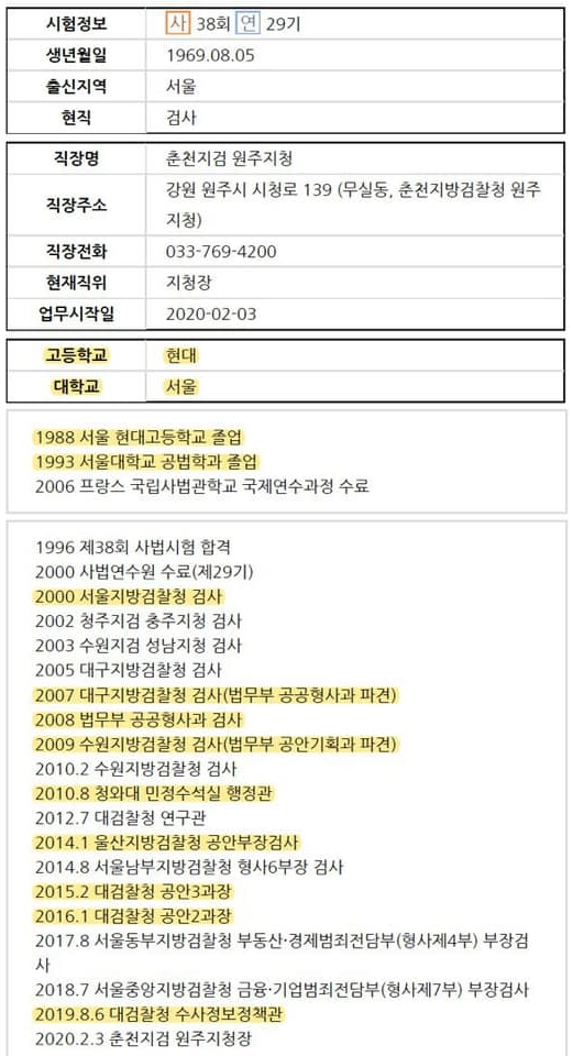 2019.08 대검찰청 수사 정보정책관 이었을때를 유심히 봐야한다