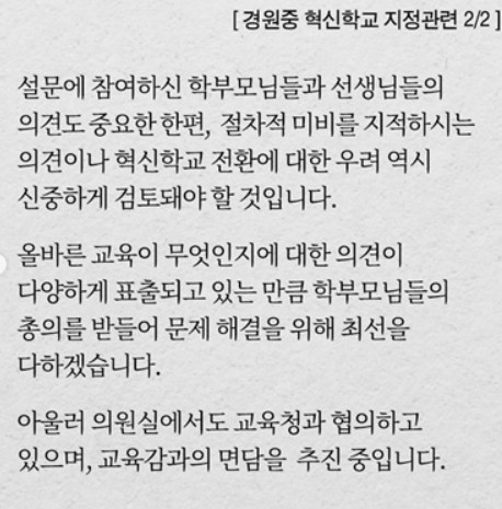 지역사회의 의견에 따라 ..아니 학부모도 아닌데 왜 참전을 하게 하는 문구를 집어 넣은거지? 딴 곳에 사는 주인이 왜 감놔라 배놔라 하는거야