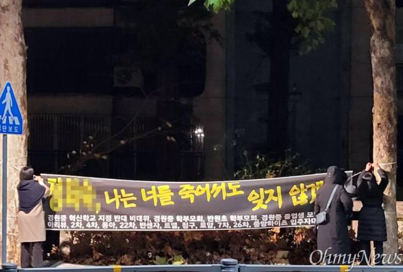 학교를 애워싸고 있는 악의가 가득한 펼침막을 서초구청은 떼지 않고 방관한다.