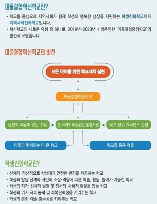 마을결합혁신학교는 시교육청이 운영하는 혁신학교 사업의 한 종류다. 서울형 혁신학교는 입시중심 경쟁교육에서 벗어나 학생 중심 협력 교육, 자율과 자치, 평등교육을 지향하는 학사 운영을 한다.