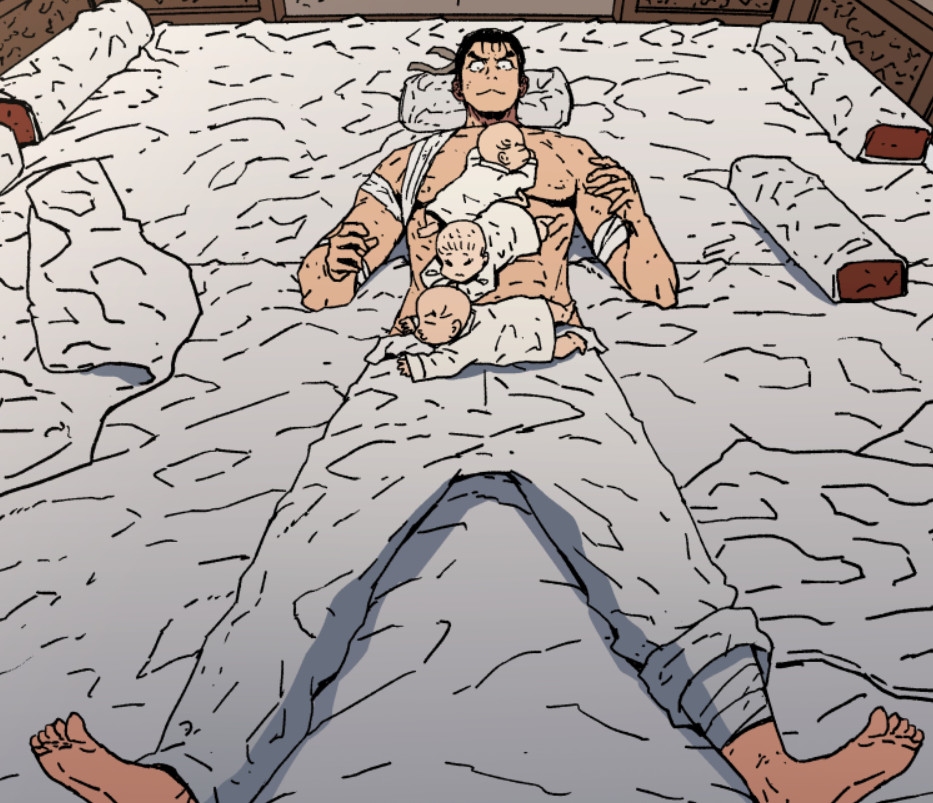 낭인 생활 하다가 결혼하게 되지 그러다 아내는 3쌍둥이를 낳다가 죽어