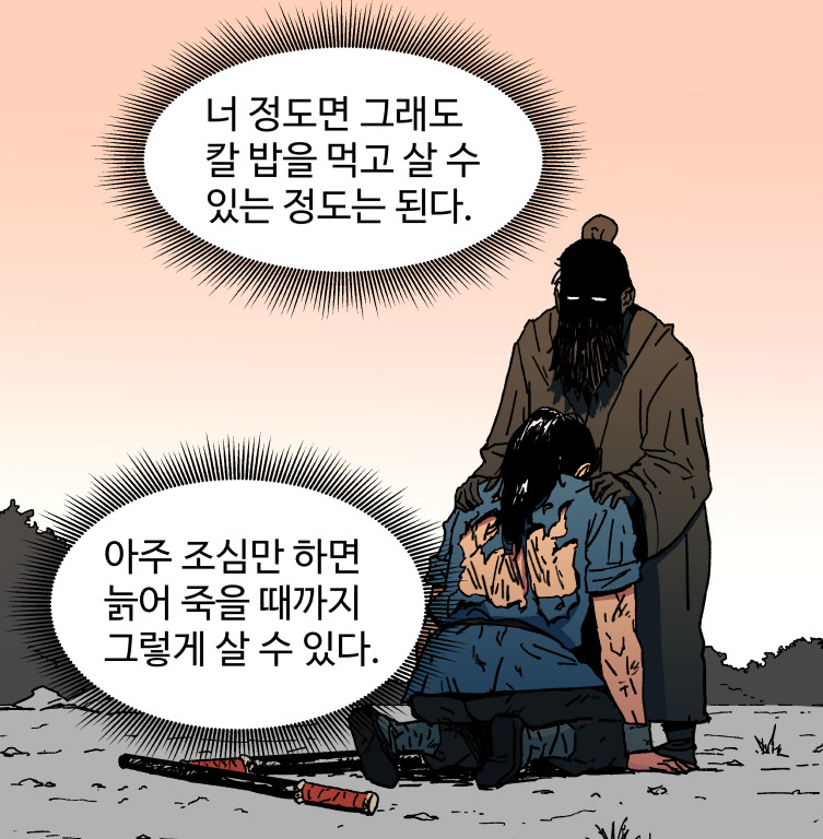용비불패처럼 대단한 스토리에 그림 실력이 받쳐 주면 성공하는 표본인데 아비무쌍은 기존 무협물에서 보지 못한 지점이 아주 많다. 고수를 보면서 와우 ...하는 감탄사가 나온다면 아비무쌍은 킬킬킬...거리면서 보는 무협웹툰이지.