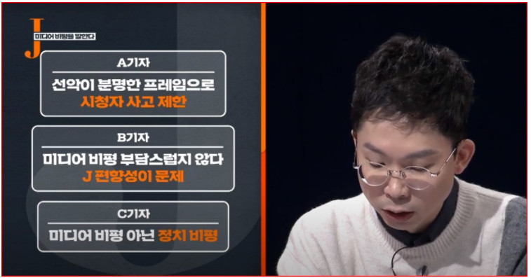 [최욱] 제가 풍문으로 듣기에는 KBS 기자들이 J로 오는 걸 꺼려 한다. 그러다 보니까 인사철마다 인사에 난항을 겪는다. 그게 종료의 요인 중 하나가 되는 건지. 그리고 이번 종료, 내부 인력들은 굉장히 반기고 있는 건지. 그런 것들을 이 자리를 빌려서 한번 물어보고 싶네요.