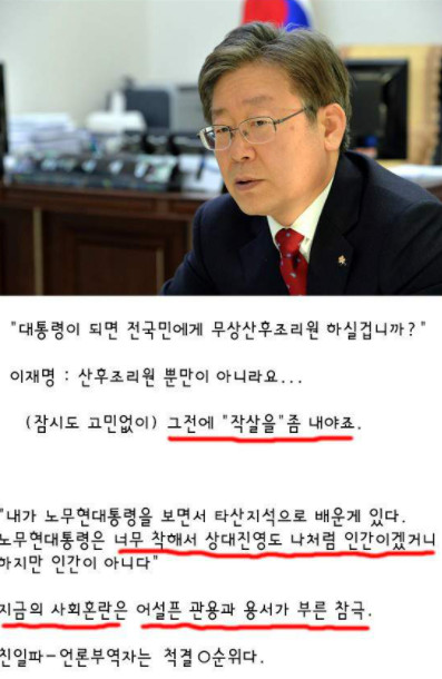 어설픈 관용과 용서는 용납하면 안된다, 짐승과는 대화 하면 안된다. 이재명의 어록은 불변이야.