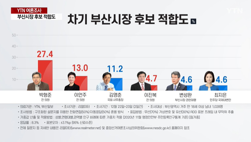 국민의힘 후보로는 박형준과 이언주가 두각을 나타내고 있는데