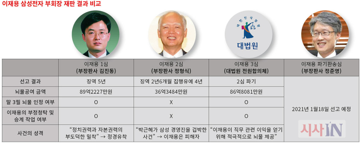 정준영 부장판사의 이재용 부회장 징역 2년6개월 실형선고, 법정구속 판결.