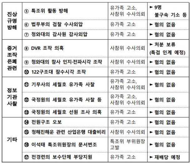 등 13개 의혹은 '혐의없음' 처분을 내렸어. 면죄부 주느라 고생했어.