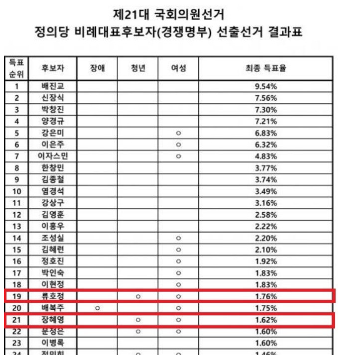 이 때문에 각각 19등과 21등을 한 류호정과 장혜영이 1번과 2번을 받은...